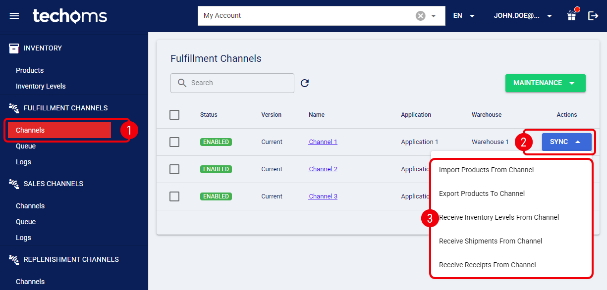 To achieve your daily operations, you will need techOMS to synchronize information from the Fulfillment Channel.
