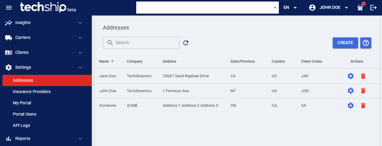 The way addresses are managed has been updated in techSHIP 2025 to improve efficiency and reduce data duplication. Instead of being tied to individual Clients, addresses are now managed in a central address book under the Addresses page in the Settings section. This allows you to create an address once and reuse it by assigning it to one or more specific Clients, or make it globally available to all.