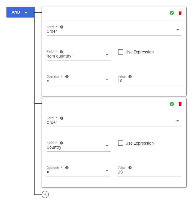 Conditions in OMRv2 are structured as logic trees, where operands are grouped under logic operators (AND, OR, NOT). This allows you to build complex evaluation paths visually.