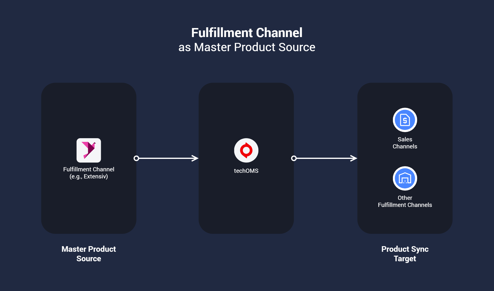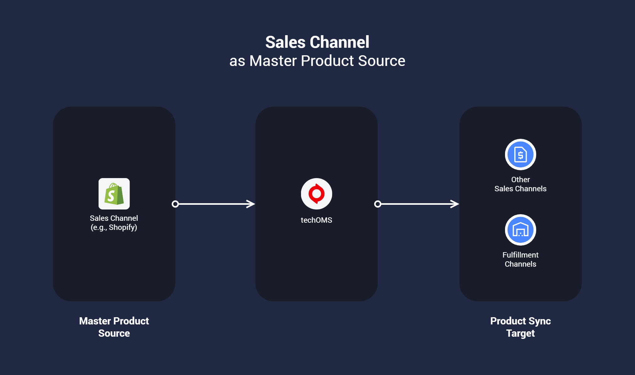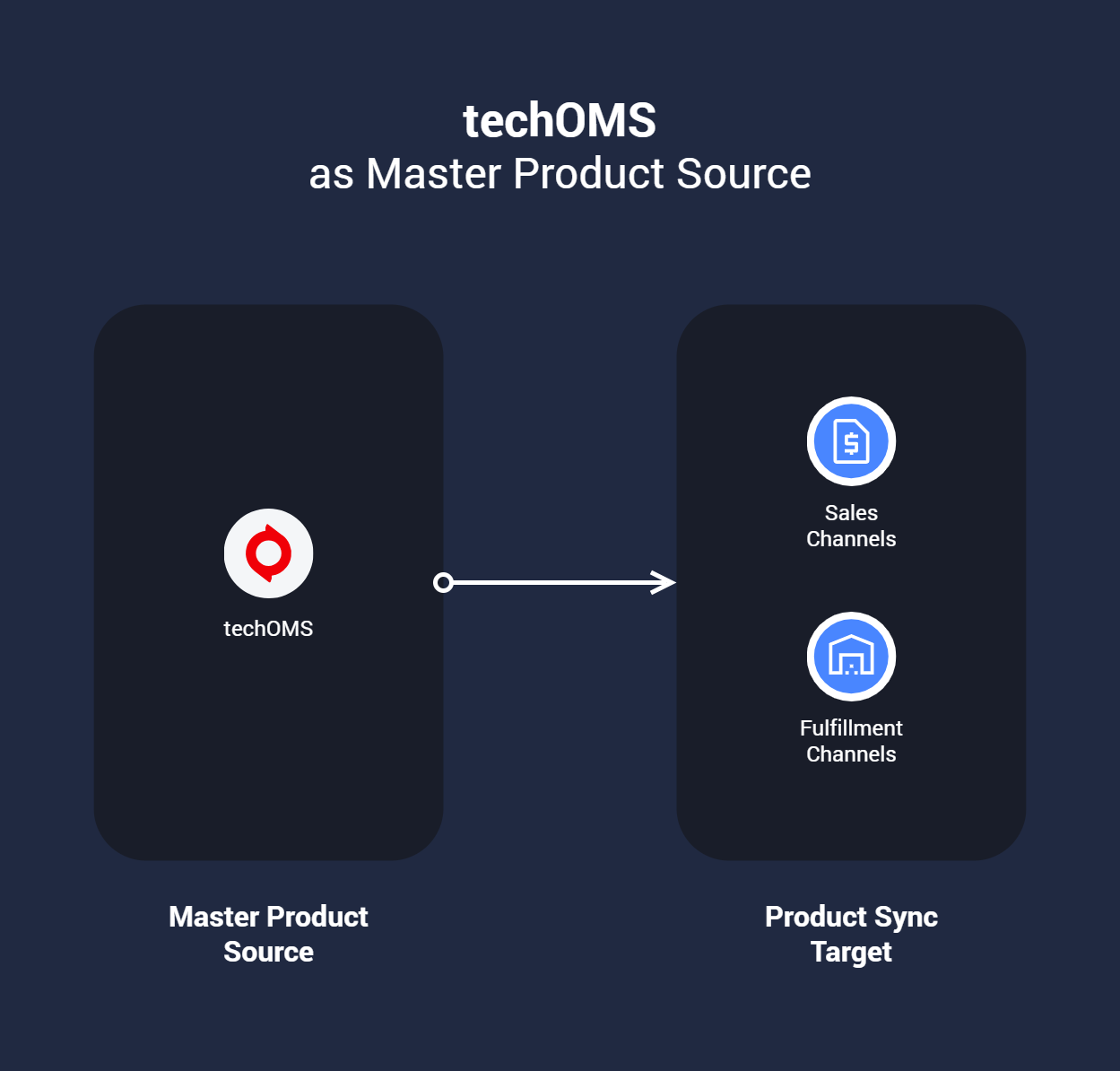 When managing products across multiple Sales and Fulfillment Channels, maintaining an accurate catalog is crucial. To achieve this, techOMS uses the Master Product Source concept, designating a single system as the source of truth for all product data in your ecosystem.