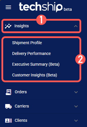 The Insights section in techSHIP 2025 provides powerful, interactive dashboards for shipment tracking, performance monitoring, and cost analysis. This article shows you how to access them.