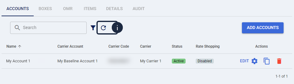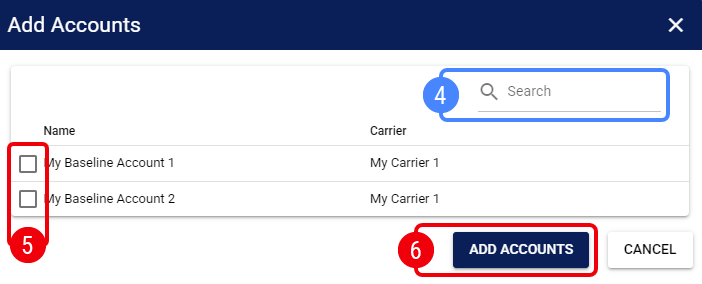 ![]() | Optionally, use the Search box to search by Baseline Account Name or Carrier. |