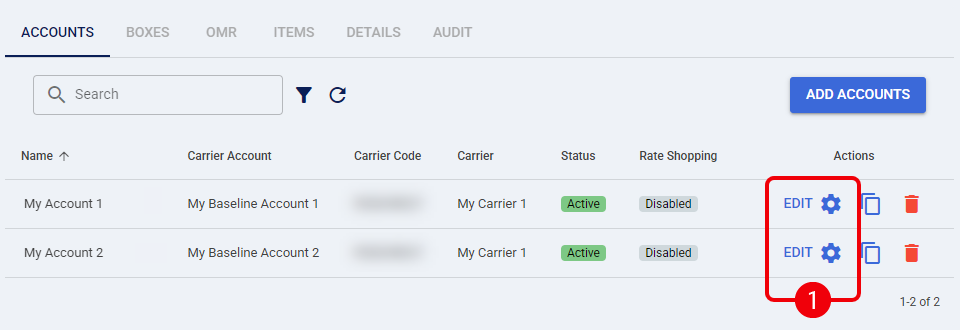 ![]() | Click Edit on each newly created account. |